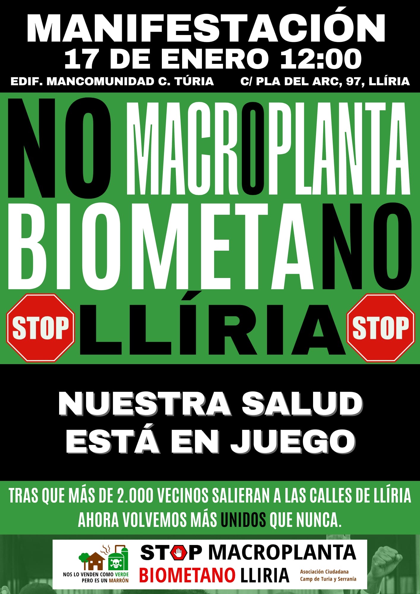17 | 12:00 | Manifestación contra la planta de biometano en Lliria