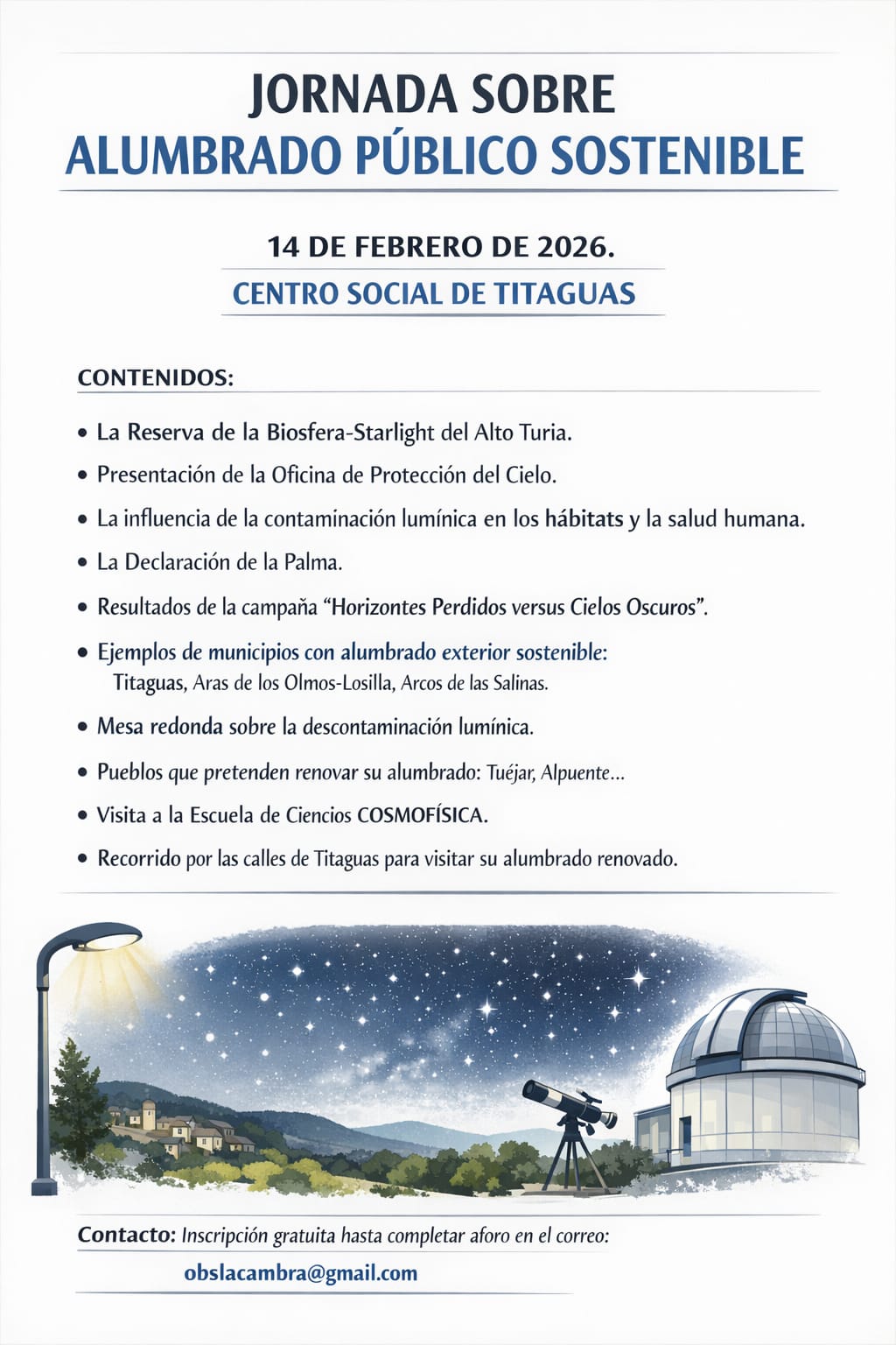 14 | Titaguas, Centro social | Jornada sobre alumbrado público sostenible.
