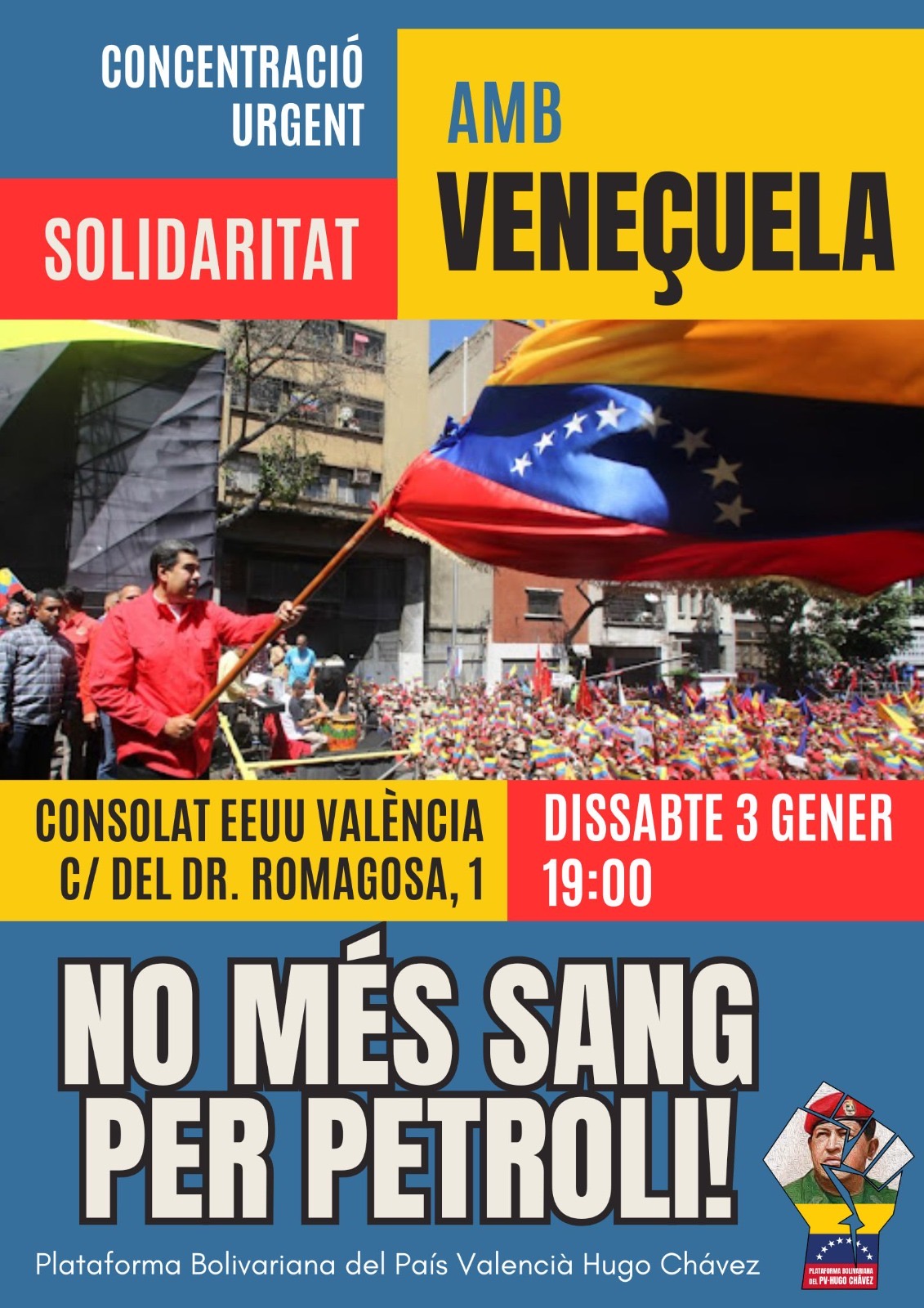 3 | 19:00 | Consolat EEUU en València | Concentració solidaria Venezuela. No més sang per petroli.